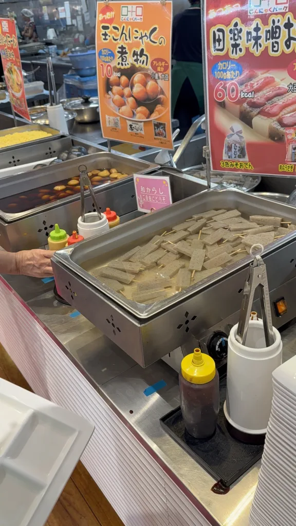 定番の田楽やお刺身こんにゃくから、ちょっと珍しいこんにゃくからあげ、焼きそば、ラーメンまで豊富なラインナップ。