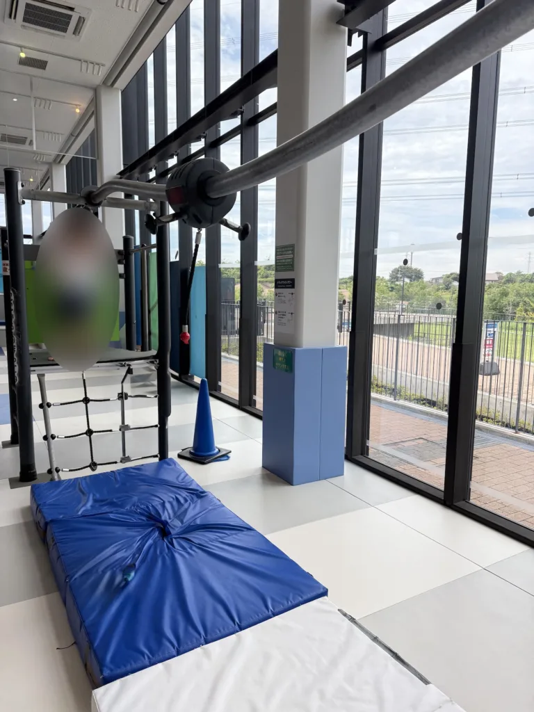 ターザンロープやトランポリンのように弾むマットもあり、室内でもしっかり体を動かして遊べます。