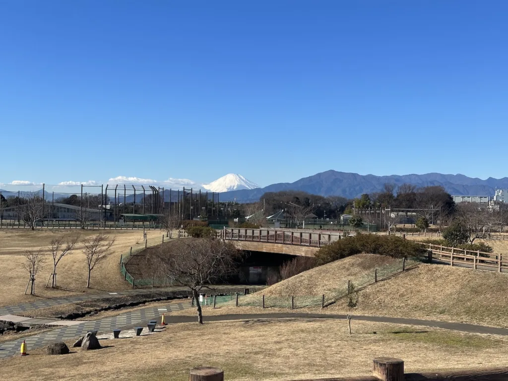 非常に開けた場所にあるため、晴れた日には富士山や丹沢の山並みが見られることも。