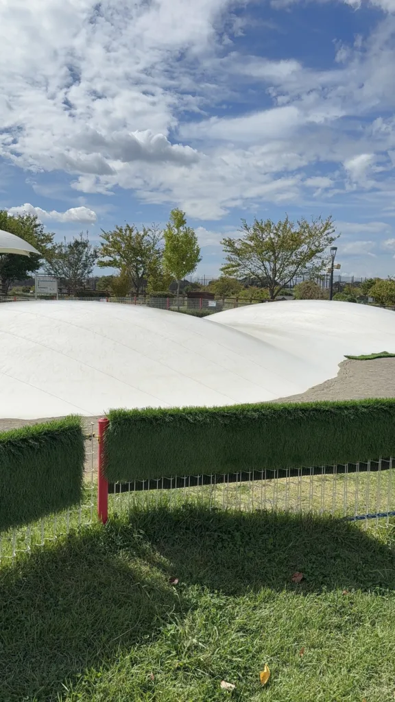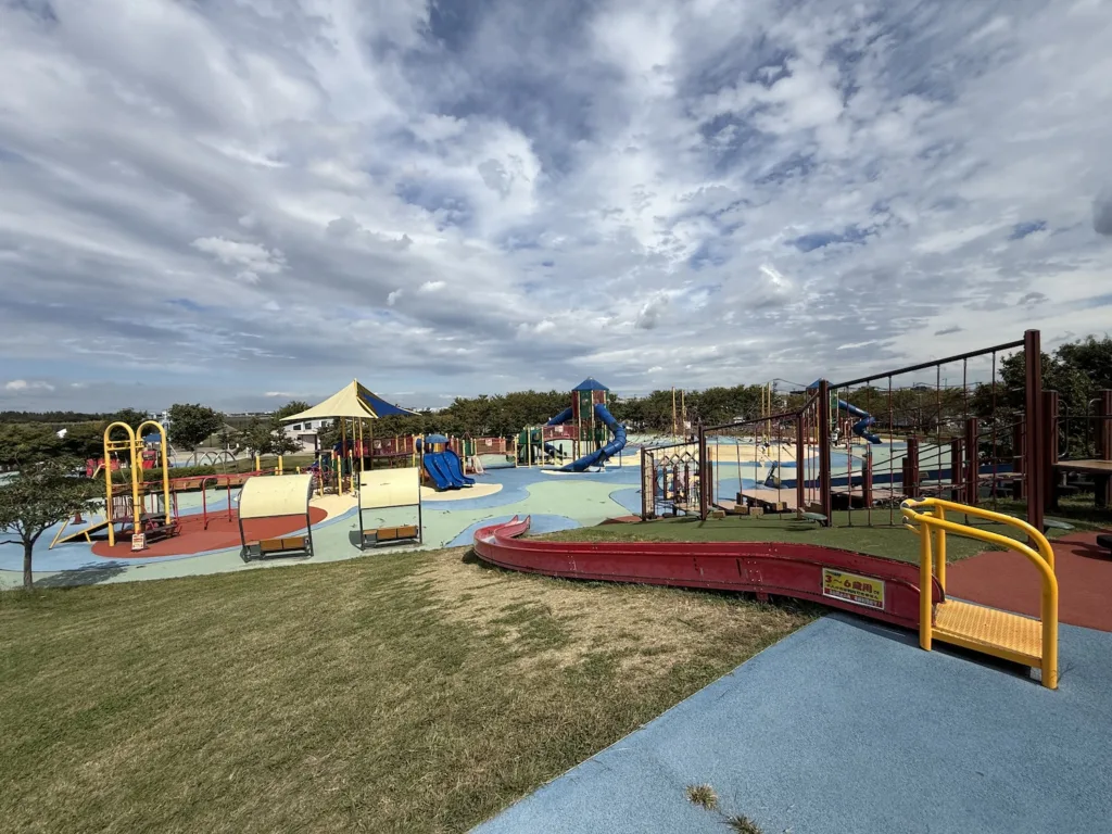 連なった大型遊具、広大な原っぱ、人気のふわふわドームなどがそろっており、1日中たっぷり遊べる最高の公園です!