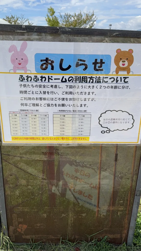 混雑状況により利用時間が変更される場合もあるので、現地の案内板をチェックしてから遊びましょう!
