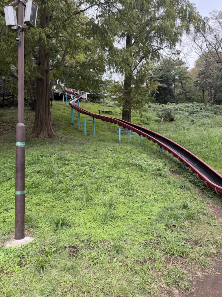 ① ロングすべり台のある「あそびの森エリア」