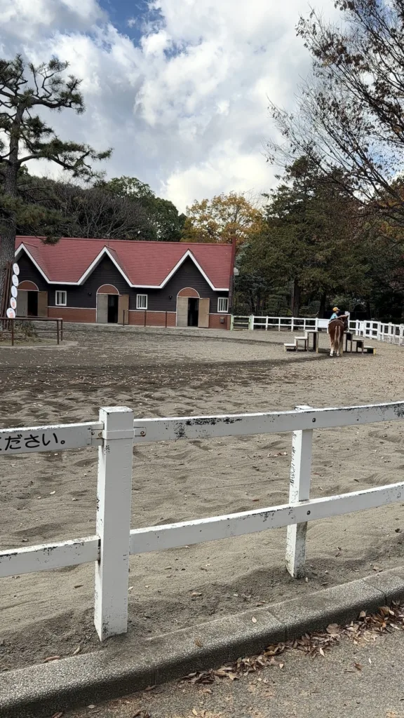ふれあい動物園では、ポニー乗馬(100円)も体験できます。