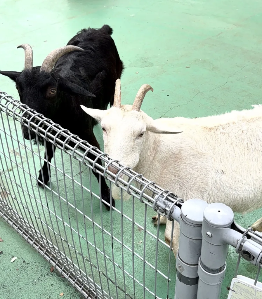 さらに、ヤギや羊もいて、売店で餌(110円)を購入すればエサやり体験も可能。