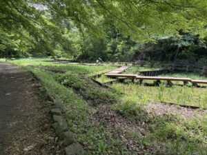 GW頃の暖かくなってきた時期から、遊具広場近くの水路に水が張られ、水遊びができるようになります。